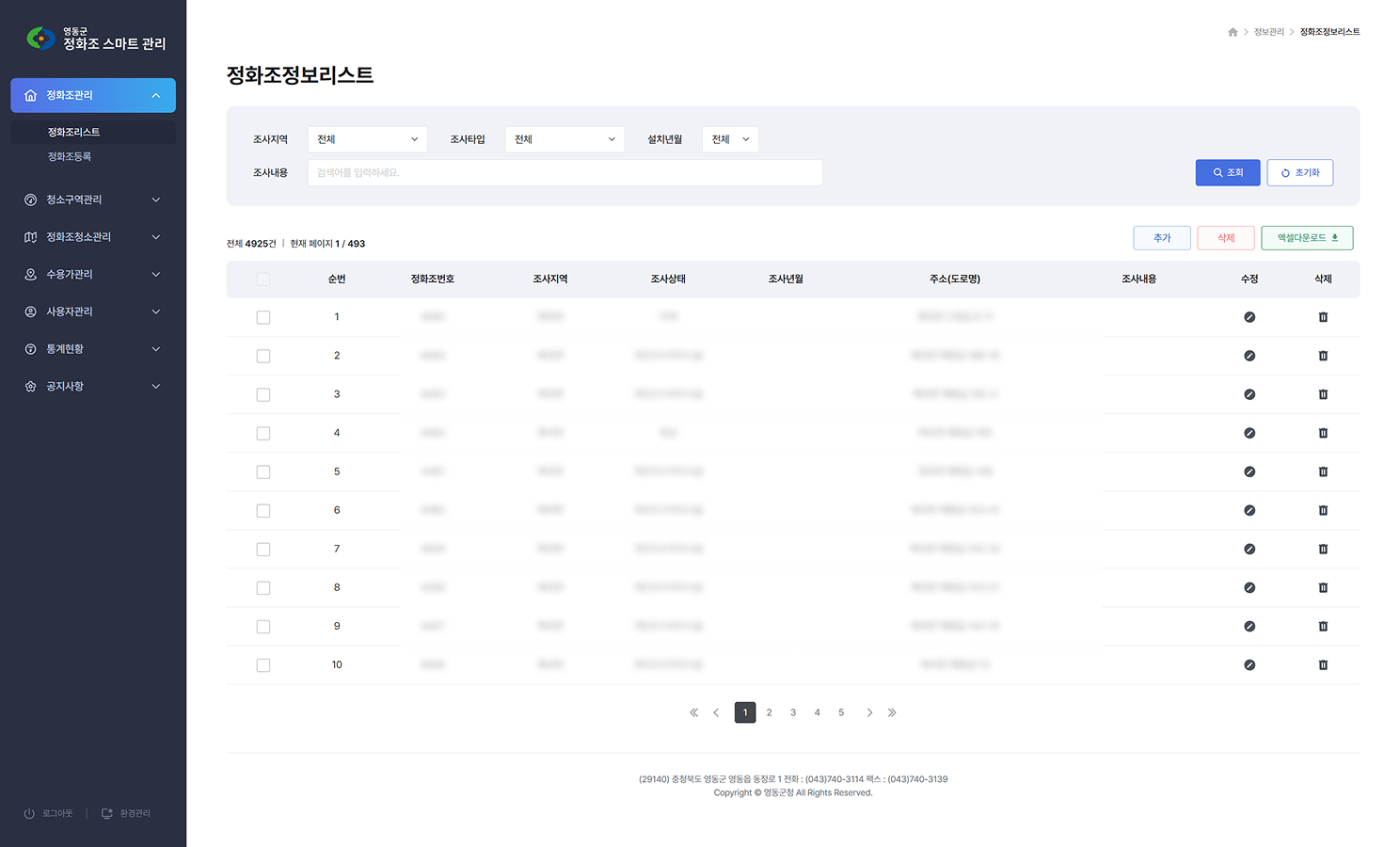 • 관리 지역의 전체 정화조 조사 내역 관리