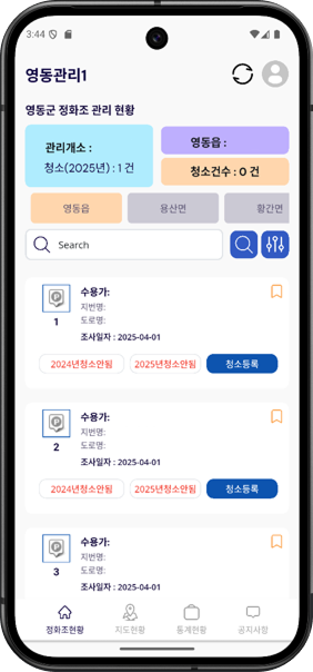 • 조사 통계, 청소 통계 현황 분석
