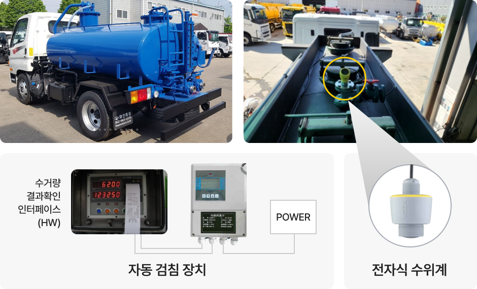 전자식 수위계를 통해 정확한 수거량을 자동으로 측정하고 기록합니다.